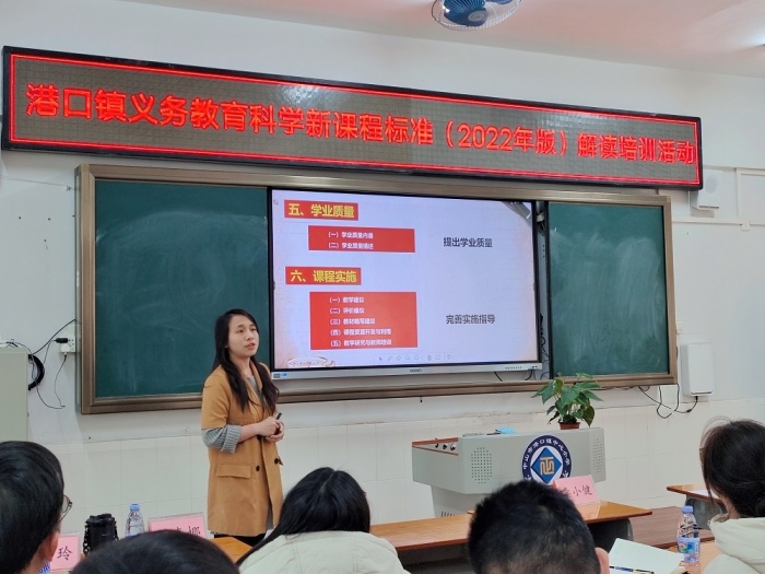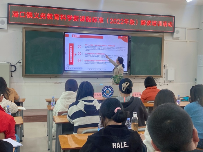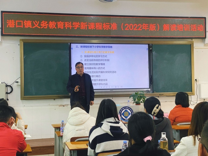 为更好地理解和落实新课标,培养学生的科学核心素养,落实五育并举,切实提高课堂教学质量,2023年2月16日下午,港口镇教育和体育事务中心在港口镇中心小学举行了《义务教育科学课程标准解读(2022版)》培训活动。港口镇教育和体育事务中心教研专干苏彩南老师到会指导,港口镇各小学科学教师参与培训。