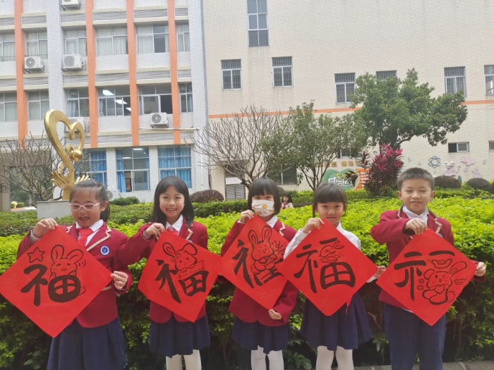 2月6日上午,港口镇中心小学到处充满欢声笑语。笑容可掬的值日老师,和蔼可敬的行政团队站在校门口迎接中心小学学子归来。看,正门口狮队在锣鼓声中跳跃腾飞,吉祥兔蹦蹦跳跳、亲切问好,财神爷眉开眼笑、恭贺新禧,真热闹呀!老师们正在给孩子们派发新年利是糖呢,那甜蜜的糖里寄托着老师对学生的殷殷期盼和衷心的祝福。整个校园经过精心布置,展示孩子们充实、愉快的年俗活动和孩子们的新年愿望。