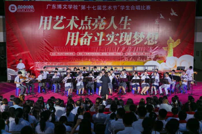 用艺术点亮人生,用奋斗实现梦想。为进一步激发师生爱国热情,弘扬民族精神,活跃校园文化气氛,让学生养成对艺术的爱好和有一种艺术特长陪伴终身,广东博文学校第十七届艺术节初中部学生主题合唱比赛经过紧张有序的筹备在学校星星舞台如期举行。