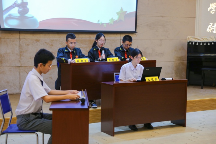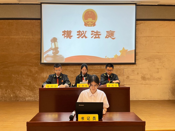 此次法庭模拟活动设置庭前准备、法庭调查、法庭辩论、法庭宣判等环节,设置审判长、书记员、公诉人、辩护人、法警等角色,交由学生担任,让学生以真实、规范、直观的形式参与到整个活动的审判流程,培养学生法治思维,加强学生对法治的理解。