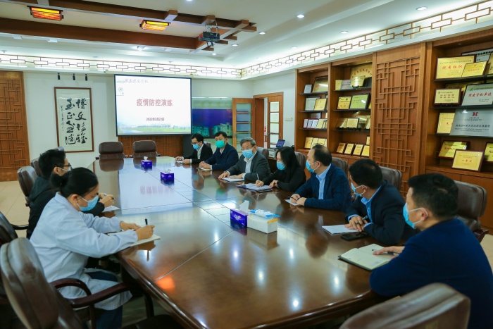 疫情防控医疗保障组、消毒组、安全后勤保障组、信息联络组、宣传和心理疏导组等各小组相关负责人员到校长室开会。会议对目前出现的情况进行分析与工作部署。