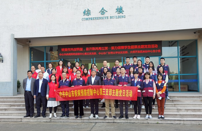 为进一步加强学校卫生工作,预防控制学生常见病发生,保障青少年身心健康,中山市疾病预防控制中心第三党支部、火炬开发区疾控中心党小组及广东博文学校党支部于11月26日下午在广东博文学校联袂开展了“转变作风促转型 勇开新局再出发”聚力保护学生健康主题党日活动。市疾控中心党委委员、中心副主任黄诚,中心第三党支部书记郭艳,广东博文学校党支部书记、校长张海经,学校副校长任德利及党员志愿者们共同参与此次活动。