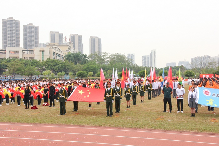 开幕式上,伴随着激昂的音乐,国旗方阵、校旗方阵、吉祥物、吉祥旗、彩旗队、各学部各年级运动员代表及家委代表队、裁判员代表队等各成方阵,有序入场。他们精神抖擞、神采飞扬,阔步经过主席台,铿锵有力的步伐、高亢嘹亮的口号,充分展现了朝气蓬勃的青春活力和昂扬的精神风貌。