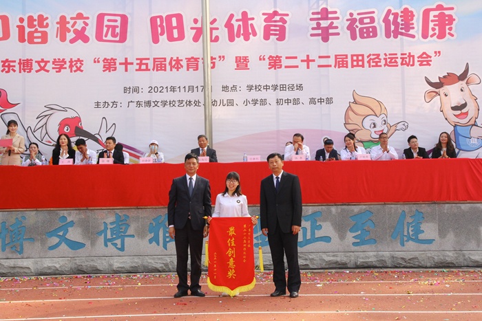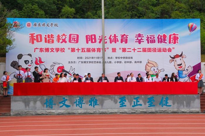 蓝天白云,彩旗飘扬。11月17日上午,广东博文学校“第十五届体育节”暨“第二十二届田径运动会”在中学田径场盛大开幕,学校党支部书记、校长张海经,学校副校长任德利,各学部校长及全体运动员、裁判员、家委代表共同参加了开幕式。开幕式由艺体处主任王萍主持。