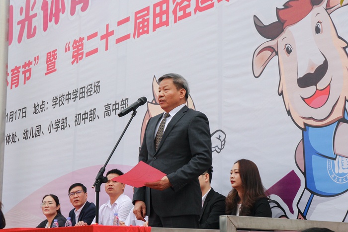 宣誓结束后,张海经校长宣布广东博文学校“第十五届体育节”暨“第二十二届田径运动会”开幕。