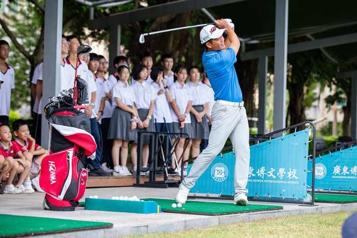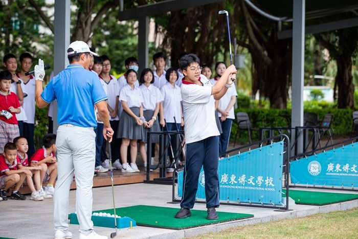 活动现场,梁文冲先生与同学们分享了其学习高尔夫球的历程和学习高尔夫球的乐趣;向同学们讲解了高尔夫球历史、文化、礼仪、规则、球具等理论知识;示范了握杆、站姿、挥杆等基本动作。同学们积极和教练互动,现场气氛融洽,高潮迭起。随后,梁文冲先生还进行了一系列高尔夫球球技表演,赢得同学们的阵阵欢呼。梁文冲指出:博文学校自带优越的高尔夫球场环境,希望同学们能够珍惜学习平台,爱上高尔夫球运动。通过本次活动,同学们亲身体验了高尔夫球的技术和礼仪文化,对高尔夫球运动产生了浓厚的兴趣。