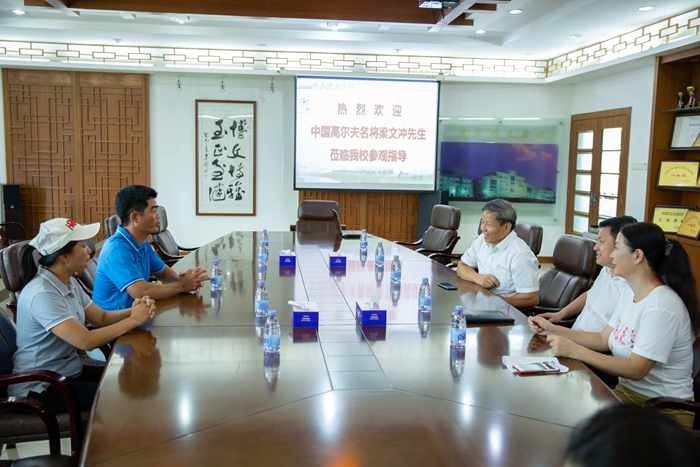 2020年9月14日下午,中国高尔夫球名将梁文冲一行莅临广东博文学校指导学校高尔夫球选修课工作,广东博文学校校长张海经、小学部校长徐曙、艺体处主任王萍陪同,高中阶段学校高尔夫球项目高水平运动队队员、小学部选修课学生、国际部高一学生等参与活动。