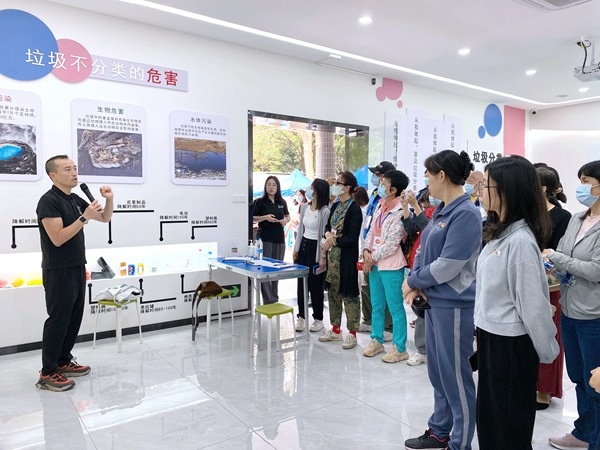随后,活动人员到达位于孙文公园北门的中山市垃圾分类时尚馆进行参观学习,讲解员为大家普及了垃圾分类日常小知识及垃圾分类的重要性,倡议大家实现垃圾资源化利用,更好地保护环境。在讲到“把厨余垃圾、园林垃圾综合利用”的时候,讲解员还特意运用现场设施设备进行堆田处理实操,让大家直观感受厨余利用的益处,党员们认真听讲、充分互动,收获颇丰。
