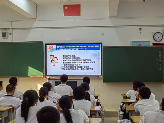 接着,各班主任们或以溺水教育视频进行导入,以我国每年因溺水丧失生命的案例数据对同学们进行安全教育,引导学生探讨溺水的原因和梳理总结自救、急救的方法。