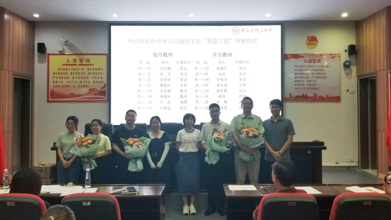 陈建科副主任介绍了新学期校门管控的措施,特别是约见家长和代收物品的注意事项,提醒班主任注意卫生防疫,做到科学防控和人文关怀兼顾。会议最后,举行了2025届班主任“青蓝工程”拜师仪式。八位新班主任为自己的班主任“师傅”送花,师徒结对,开启班主任生涯新篇章。