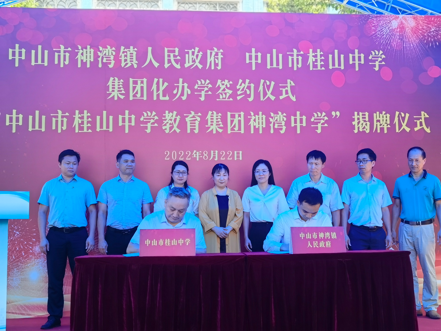 8月22日上午,中山市桂山中学与中山市神湾镇人民政府集团化办学签约及“中山市桂山中学教育集团神湾中学”揭牌仪式在神湾中学举行。这标志着神湾中学正式纳入中山市桂山中学教育集团管理,就此开启新的教育篇章。