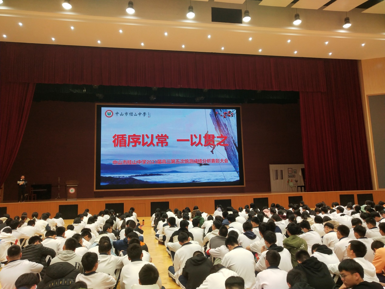 2月3日晚,桂山中学高三年级全体班主任及学生齐聚陈戈平体育馆,召开主题为“循序以常 一以贯之”的高三上学期期末大湾区联考总结表彰大会,年级主任吴彬主持此次大会。
