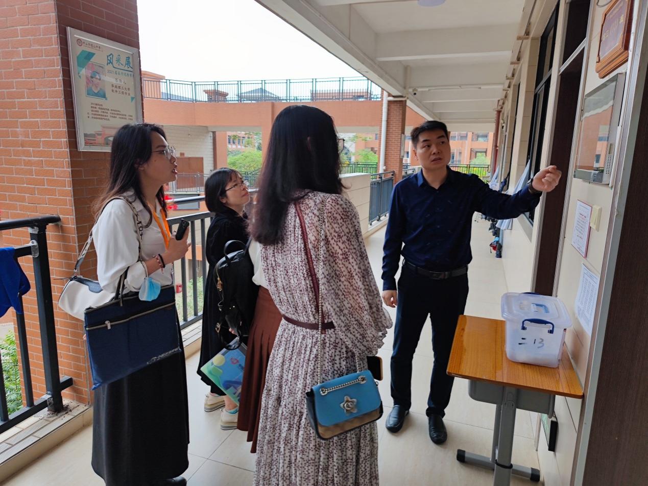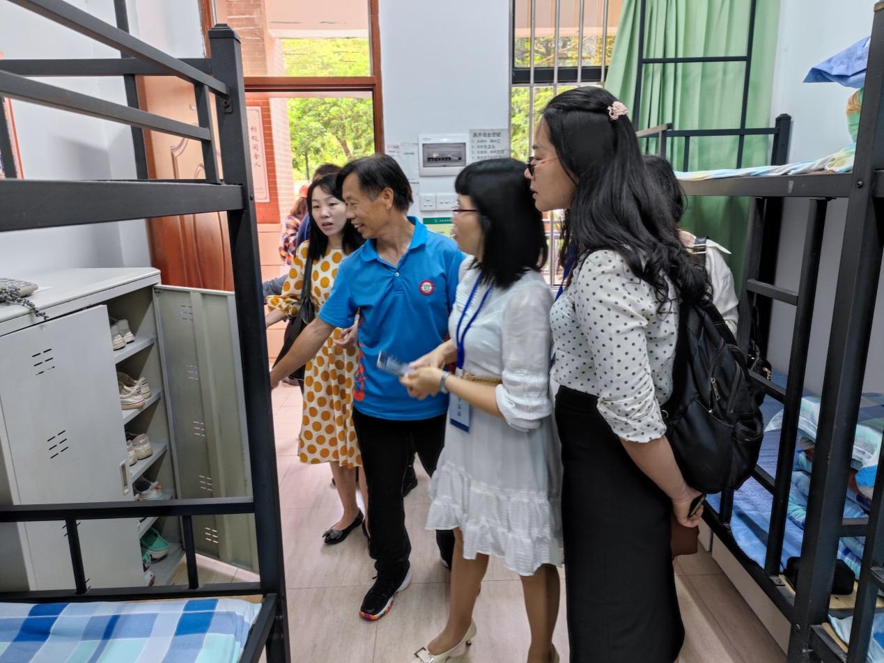 沿途,刘浩主任陪同江门市中小学名班主任培养对象参观了团委功能场室、心理咨询室、桂山电视台等,并向来宾详细讲解了各个场室的活动开展情况。刘主任现场展示了操作了学校班级派,展示家长短信、课堂签到、充值记录、班级风采等流程,让来宾全面感知桂山智慧校园建设;深入探寻宿舍管理经验,感受宿舍整洁的生活环境,了解了宿管、班主任、宿管会干部的三级管理模式和桂山宿舍的个性化、常态化、自主化、反向信息化、宿舍诚信星级化等特色。江门市教师团队表示,桂山的宿舍管理不仅减少了班主任的工作,也让学生在自主自立中不断成长。