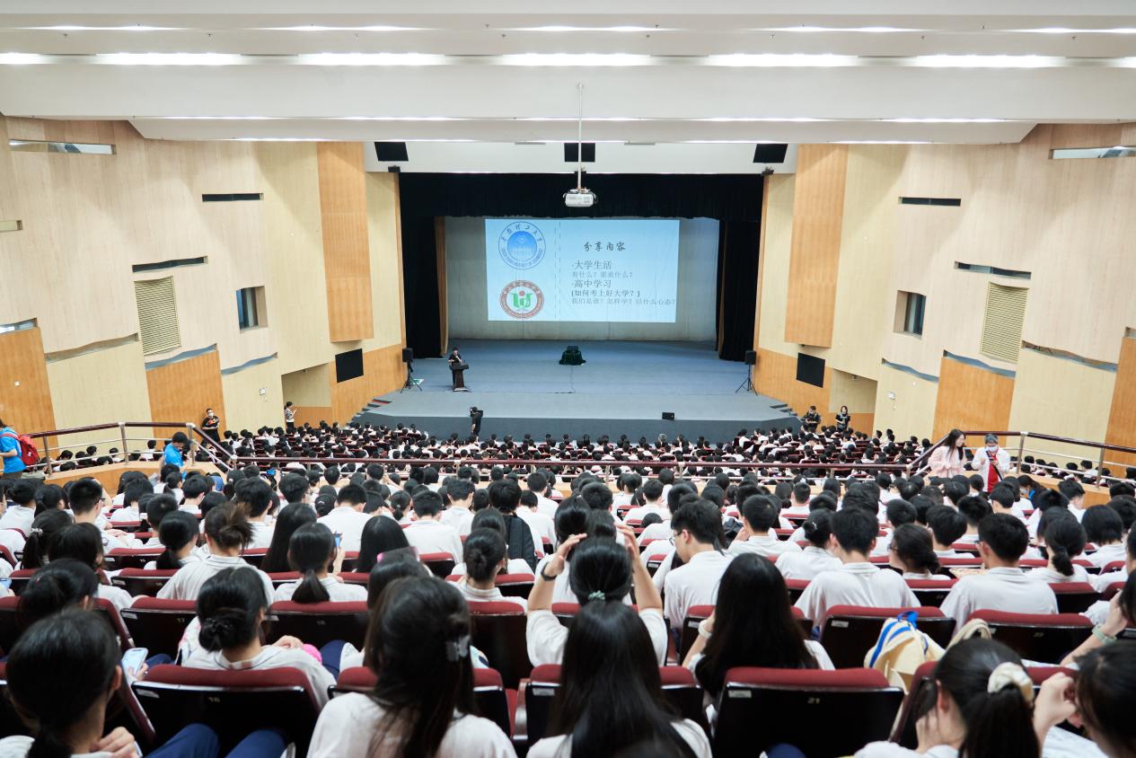 参观结束后,桂山学子齐聚华工大讲堂,与优秀的桂山毕业生、华工在读学生进行了深度交流。学长学姐从大学环境、生活、社团、课程等方面引导学生认识到在大学学习需要的能力与素质,并从学习方法、心态、时间管理、目标设定、生涯选择几个方面对如何把握高中生活进行了分享。接着,在场学生们就“高中学习时间安排、情绪管理、专业选择”等方面在现场与学长学姐进行了互动。学长学姐的分享有趣生动,贴近实际,学生们都收获颇丰,意犹未尽,纷纷表示希望将来可以与学长学姐们进行更为深入的交流与探讨。