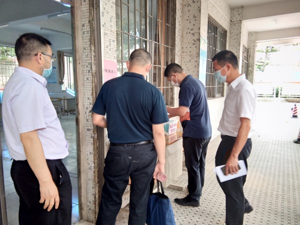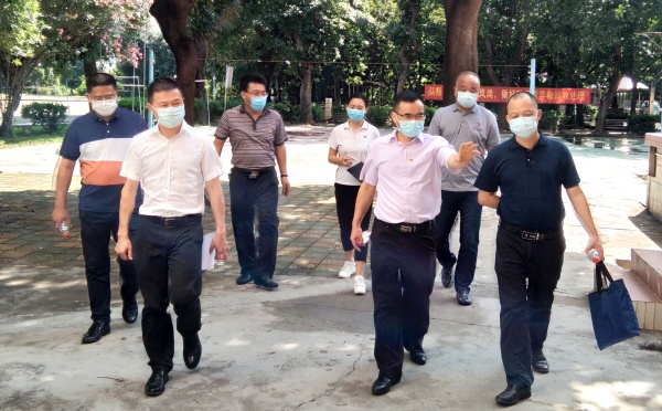 为进一步推进学校疫情防控和第二批返校复学工作,5月7日下午,由镇教育事务指导中心、卫健局、市场监督所和疾控中心等部门组成的复学准备工作验收组来到市古镇高级中学验收学校第二批返校复学准备工作。学校校长吴明红、副校长谭杰玉、赵朝贤等陪同检查。