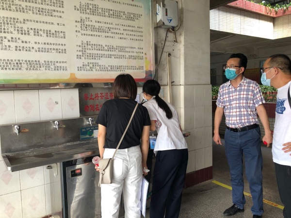 查看学校食堂、宿舍、饮水卫生等,验收组详细了解食堂用餐安全、宿舍卫生清洁、饮水清洁、消毒等环节的具体落实情况。