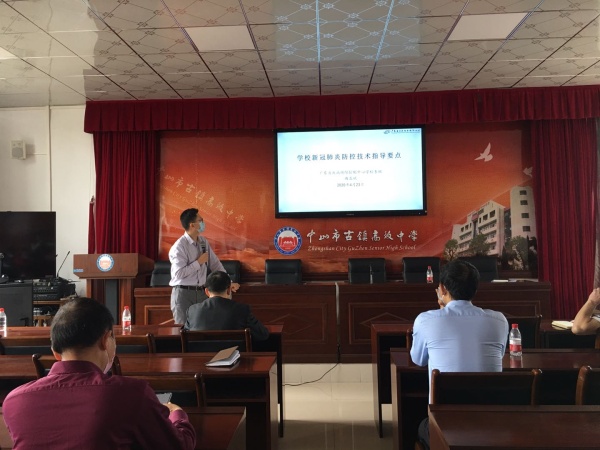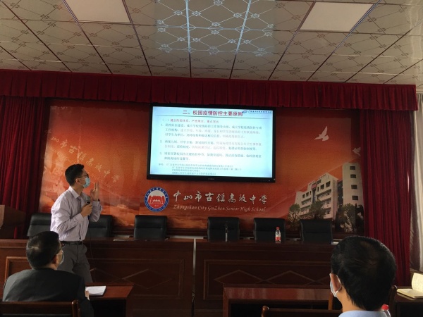 为开学后有效预防、及时发现和控制新冠肺炎疫情,提高全校教职员工防控疫情能力,4月24日,市古镇高中健康副校长在学校综合室举办了新冠肺炎疫情应急处置培训。学校全体行政扩大会议成员、班主任、后勤人员参加了培训。校务办公室副主任肖东文主持。