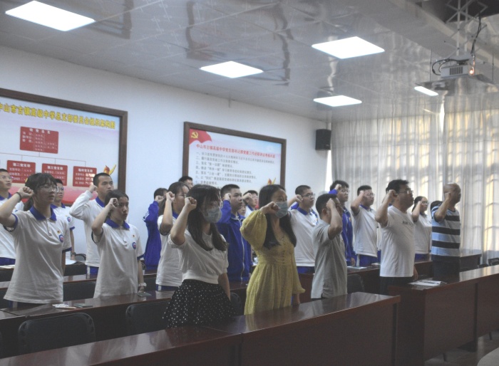 2022年,恰逢中国共产主义青年团成立100周年。回望百年,青心向党。新时代的青年,青春正当时,奋斗正当时,更应踔厉奋发、笃行不怠,在新时代新征程中留下青春奋斗的鲜明印记。为庆祝建团百年,同时纪念“五四”运动,近期,中山市古镇高级中学举办了以“青春心向党,建功新时代”为主题的入团仪式。校党总支委员、德育处主任王学智,德育处副主任杨宝辉,校团委汤佳炜老师,教工支部团员彭蓝宇老师、顾烨婷老师出席了本次活动。