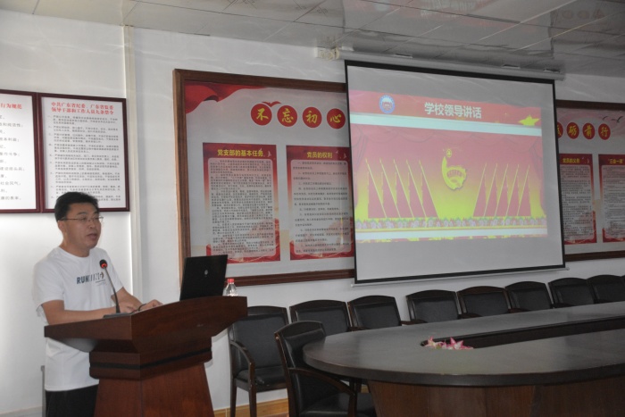 校党总支委员、德育处王学智主任向同学们阐释了团徽的意义。团徽代表着对每位团员的信任,也是给团员提出的要求,希望新团员们佩戴它、爱护它,并以实际行动为它增色,为它添彩。同时,王主任对新团员提出了三点要求:以习近平总书记对新时代青年的希望和要求为根本遵循,坚定理想信念;自觉树立和践行社会主义核心价值观,让青春在为祖国、为民族、为人民、为人类的不懈奋斗中绽放绚丽之花;严格要求自己,真正做到从思想入团到行动上入团。王主任还鼓舞同学们要牢记总书记的殷殷嘱托,立鸿鹄志,做奋斗者,为实现民族复兴激发青年智慧,凝聚青年力量。王主任的讲话极大地鼓舞了团员们的斗志。