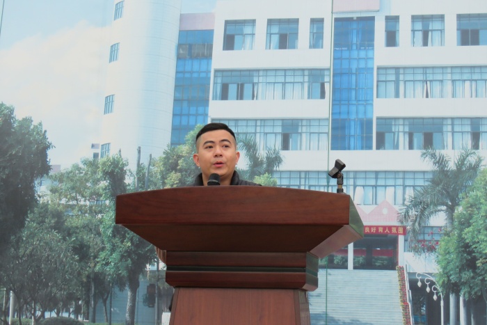 在思政第一课中,王学成校长深情回顾了百年党史以及全校师生在2021年创造的亮眼业绩,号召全体师生继续坚定不移跟党走,奋力建功新时代,用实干苦干巧干勾勒奋斗者追梦的最美姿态。在新的历史交汇点上,要以奔跑的姿态阔步向前。一是要胸怀天下,勇担使命,将爱国作为恒久的信仰,以拼搏奋斗为生命之歌写下最美的注释;二是要修身立德,学思行知,打破现有的舒适圈,扎扎实实向内生长,向外突破,成就更好的自己;三是阳光健康,自信豁达,用强大的内心力量在这个伟大的时代感受到幸福与美好,在古高的舞台上翩翩起舞,在人生的旅途中各自芬芳。最后,王校长借用习近平总书记的话鼓舞全体师生,要拿出“虎虎生威的雄风、生龙活虎的干劲、气吞万里如虎的精神”,继续书写人生路上的灿烂篇章。 最后,校团委的汤佳炜老师进行了2022年中山市“慈善万人行”的捐款倡议。汤老师介绍了“慈善万人行”活动的历史起源、募集善款的用途以及疫情防控形势下的最新捐款流程,并呼吁同学们继续发扬中华民族与人为善、扶危济困的传统美德,弘扬中山博爱城市精神,解囊相助,为有需要的人奉献力所能及的爱心,为中山、为古高增添一丝暖意。