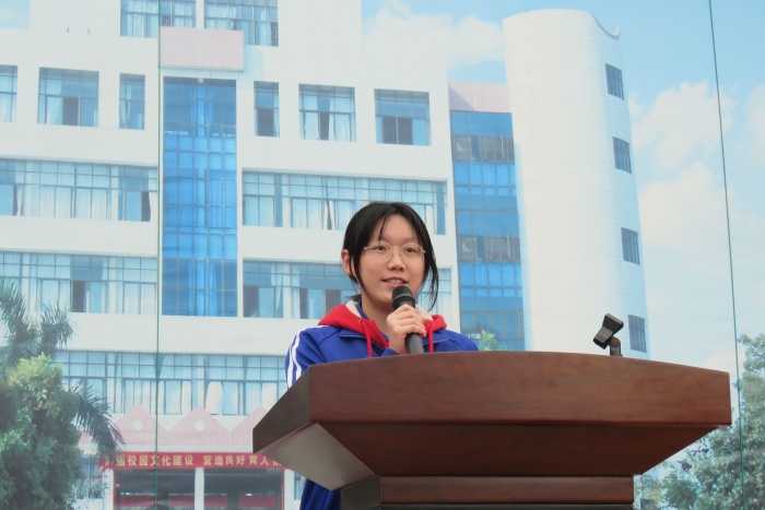 高三10班周洲同学在发言中,分别勉励高一、高二年级的学弟学妹们在不同的阶段严格要求自己,并呼吁高三的同学在高中最后的一百多天以更加坚定的意志和更加饱满的热情,拼尽全力,奔向心中理想的大学,创造古高新的辉煌。
