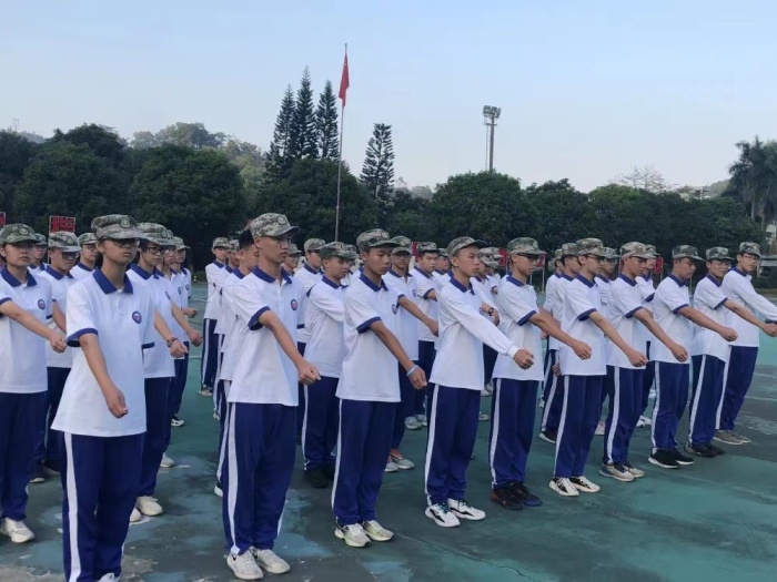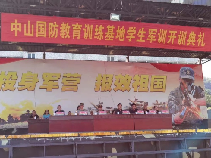 中山市国防教育训练基地副主任张培栋在讲话中,强调全体学生务必以饱满的热情投入到军训中去,将军训作为淬炼意志、提升自我的契机,充分挖掘潜能、超越自我,立志做栋梁之才,报效祖国!