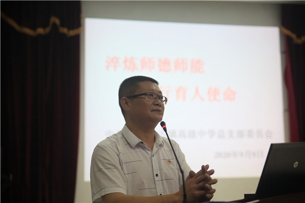 谭杰玉副校长给全体教师作了《淬炼师德师能、践行育人使命》师德师风建设专题报告,他结合工作实际,对师德师风的深刻内涵进行了诠释,号召全体教师要正确理解和处理教书与育人、言传与身教的关系,以忠诚的政治品格、高度自觉的大局意识、朴实担当的工作作风、爱岗敬业的奉献精神、清廉自律的道德操守,以德立身、以德立学、以德施教、以德育德,努力成为诚仁博达、敬业博学、乐教博爱的新时代幸福点灯人!