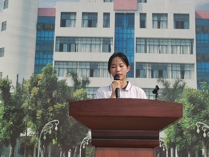 韦键贤同学的发言主题是《传承文明,从我做起》。她从仪容仪表、爱护校园环境、不违规使用手机和充电宝、文明上网、积极参与志愿者活动等身边事切入,号召同学们规范自身言行,养成文明习惯,正当文明使者,让文明之花开满古高校园。