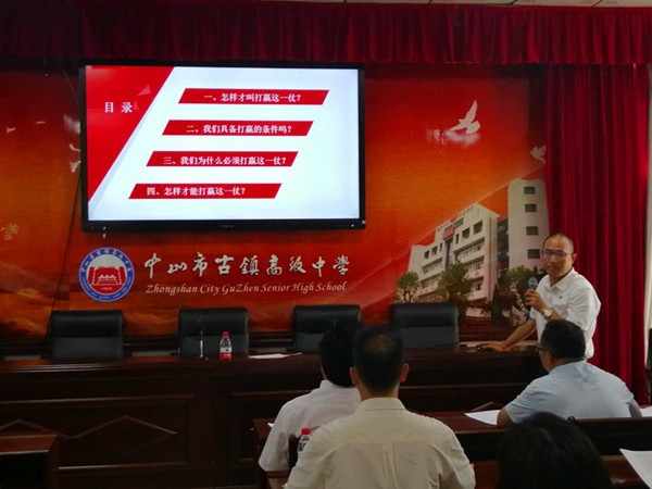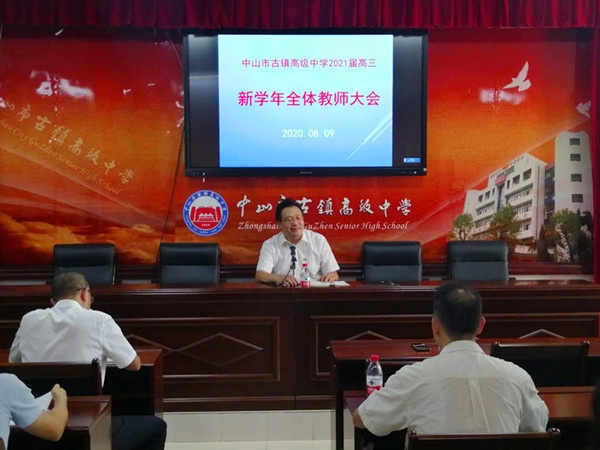 为部署新学期各项工作,8月9日上午,中山市古镇高级中学在综合室召开了高三年级全体教师大会,王学成校长、谭杰玉副校长、赵朝贤副校长、各处室主管领导和全体高三教师出席了本次会议,高三年级刘雄万副主任主持会议。