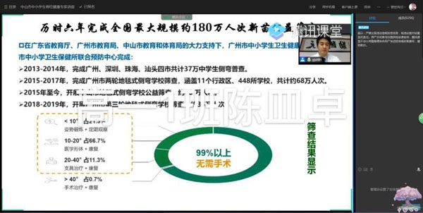 为进一步提升学生脊柱健康管理意识,切实保护脊柱侧弯患病学生健康,推动中小学生脊柱健康管理精准化服务,促进“健康中国”建设,中山市教体局号召全市中小学生于7月19日通过手机扫码或电脑网络,在直播平台上聆听上海交通大学医学院附属新华医院杨军林教授讲授脊柱侧弯科普知识,参与中小学生脊柱健康专家讲座直播活动。