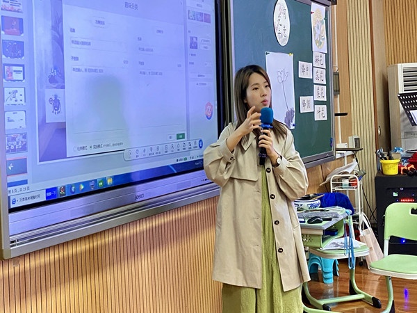 首先由潘娜老师现场展示了一节六年级的课题为《写意花卉》的信息技术提升工程2.0课例。在此次教学设计上,潘老师采用信息技术2.0能力点B4学生创造性学习与表达,用思维导图进行前置性学习,课中以学生自主探索学习为主,实现先学后教,结合信息技术,用希沃白板的拖摆功能,解决了本节课的重难点——如何用墨画写意荷花。同时运用能力点B4学生创造性学习与表达,以古诗文解说《爱莲说》视频导入,充分运用信息技术2.0能力点B1跨学科学习活动设计,将语文学科的诗意贯穿整节课,让学生进入更浓郁的创设情境中。整节课运用了翻转课堂模式,以小组合作的方式开展学习活动,实现先学后教,学生主体的课堂。利用信息技术希沃白板软件,创设诗情画意的情境,实现了智慧环境下教学模式创新,使学生在创造艺术形式和美的感受中获得美感体验,并唤起他们的创造热情和审美感悟。课后潘娜老师通过个人课例进行信息技术应用能力点实践经验分享并与在场老师进行深入交流。