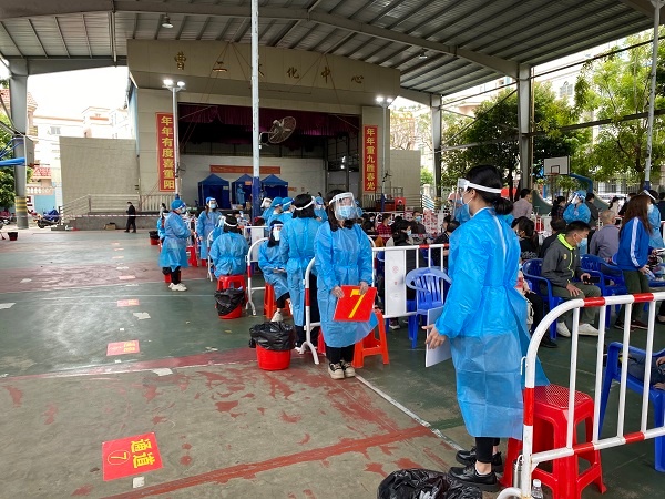 当前新冠病毒变异毒株传染性、隐匿性强,极易多点散发或集中暴发,为有效阻断疫情传播风险,保障人民群众身体健康和生命安全,进一步巩固提升来之不易的疫情防控成果,接到上级通知,4月1日,古镇镇曹二村决定在曹二小学体育场开展新一轮全员核酸检测。曹二小学党支部全体党员以及部分教师参与了本次核酸检测工作。