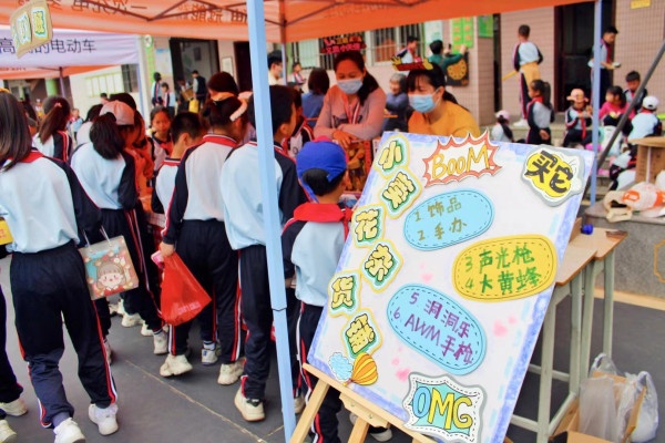 义卖活动现场,各班级的摊位前陈列着各式各样的玩具、文具、书籍、小动物、装饰品等等。曹二小学的学生们转变角色,化身为一个个小“叫卖员”,拿着“自家”的商品向家长、教师和同学出售,以此锻炼自我交流能力,发扬学雷锋志愿服务精神。曹二小学的校长邱波及教师们以身作则,也加入到了义卖行列,指导学生“销售”之道。