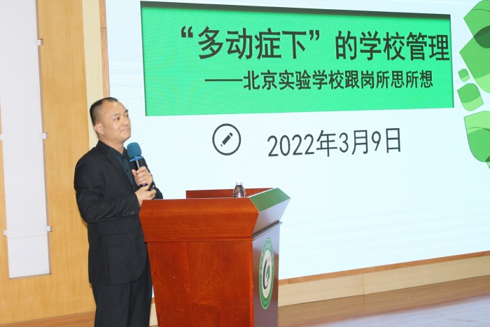 古镇镇曹二小学校长邱波在论坛上作了题为《“多动症”下的学校管理》的专题讲座。在专题讲座上,邱校长将自己去年在北京实验学校跟岗学习收获到的北京实验学校教育集团校长曾军良的优秀教育经验、管理经验毫无保留地分享给大家。随后,邱校长还将在跟岗学习中学到的宝贵经验与曹二小学的实际情况相结合向大家详尽地介绍了曹二小学的创办历史、发展历程、发展规划。他还表示本次学习结交到了一些志同道合的教育知音,与优秀的人为伍他深受感染,他也将学以致用践行发展曹二小学“立人教育”理念。