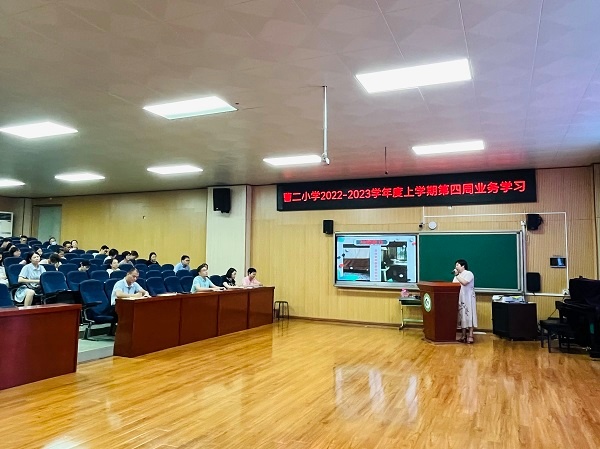 为进一步加强教师队伍师德师风建设,切实提高教师“爱岗敬业,乐于奉献”的精神,塑造一支师德优、业务精的高素质教师队伍。2022年9月23日下午,曹二小学在阶梯室对全校教职工开展了师德师风专题培训。