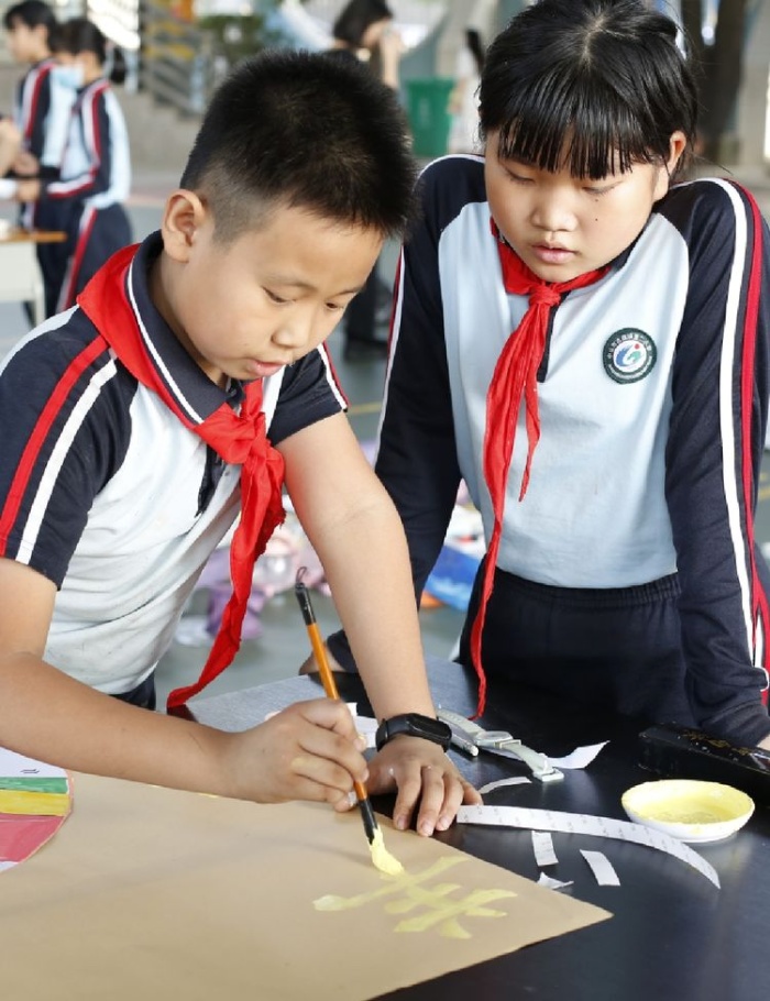 在活动开展前,美术老师先在各班开展小稿创作初赛评比并在班级择优选出6名学生代表班级比赛。比赛当天,每班6名参赛选手现场合作绘画出一幅全开尺寸的画。美术科组长黎梦春老师在比赛前告知本次比赛要求并强调了创作内容及构思方向。曹二小学校长邱波宣布比赛活动开始。