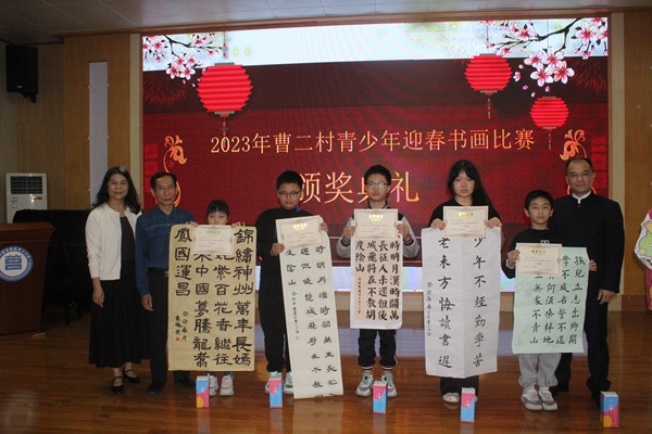 2023年2月11日早上,在春和景明之时,曹二村第十四届“我爱祖国,我爱我家”迎春书画比赛在曹二小学隆重举行。此次书画比赛得到了各级领导的大力支持,本次比赛评委有曹二村村委委员、党委委员汤有屏委员、曹二村关工委理事长区金泉同志、曹二小学校长邱波、德育处主任连雪梅、高凯旋老师、曾俊翔老师、黎梦春老师、李月娇老师、刘逸凡老师、练海岸老师,并由汤有屏委员、区金泉理事长、邱波校长担任颁奖嘉宾。