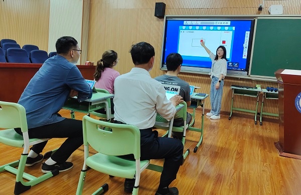 首先,课题主持人陈江老师针对课题现阶段取得的成果进行总结,并检查了大家近期确定的课程课题。为了确保课程的顺利开展,陈江老师联系了读书郎学习机为课题开展提供平板。谢婷婷老师率先研究了读书郎学习机的使用方法,为大家开展交流分享讲座。谢老师分别从读书郎学习机中的课件制作、游戏设置、作业批改和课堂互动抢答等方面依次和大家交流使用方法,并引导大家实践操作,遇到大家不懂的有关操作的步骤和问题,谢老师耐心指导,课题组成员都一一精通使用方法。最后,谢老师为大家设置了一个课题,每位老师根据课题制作相关小游戏,再利用游戏互动环节老师们逐渐精通制作方法。