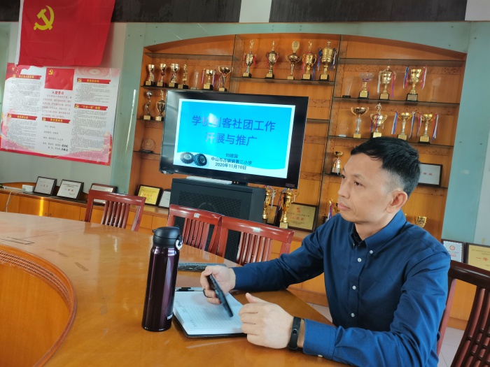 本次会议由古镇镇小学信息技术中心教研组长、中山市古镇镇海洲第一小学郭伟斌老师主持。研讨会上,首先由古镇镇小学信息技术名教师、中山市古镇镇曹三小学刘建国老师作了题为《学校创客社团工作开展与推广》专题讲座,刘建国老师分别从前期准备、社团建设、活动参与、获得荣誉、学校支持以及宣传推广六个方面详细的讲述了学校创客社团建设的方法和步骤。