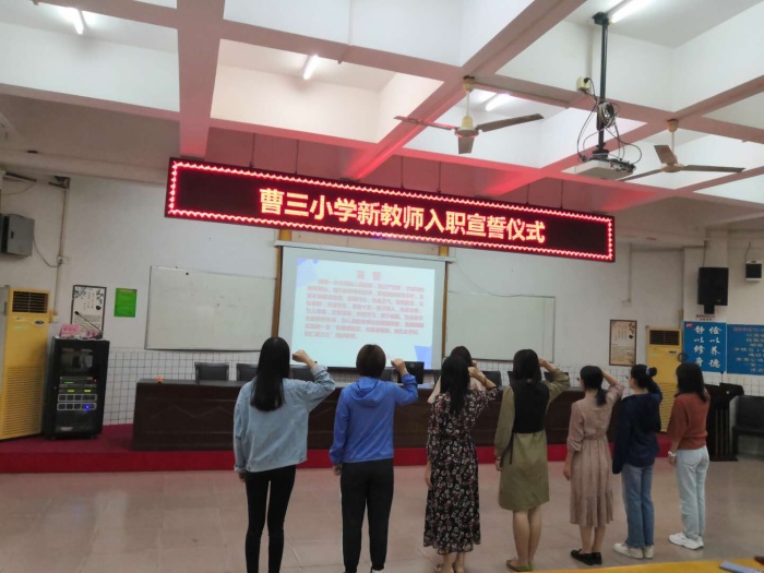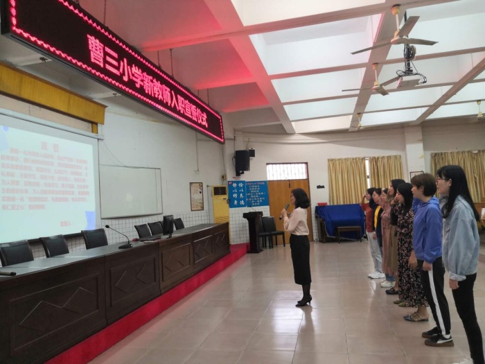 为了进一步弘扬高尚师德,展现曹三小学教师的职业理想、职业操守和职业精神,促进广大教师充分认识人民教师的光荣使命,恪尽职守,履职尽责,为办好人民满意的教育做出积极贡献,10月9日,曹三小学举行新教师入职宣誓活动。本次活动由蒋丽媛校长主持。