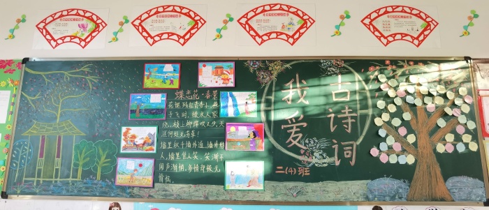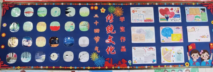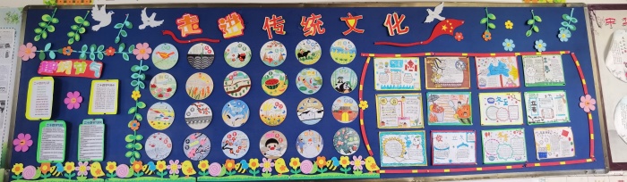 活动期间,参赛班级紧紧围绕着“走进中华优秀传统文化”的活动主题,班主任组织学生们根据中华传统文化中经典元素自主设计、制作教室板报,有的以京剧为主题,有的以爱国故事为背景,有的以二十四节气为主题,既有爱国主义成语诗词,也有典故及时代新解,学生享受并体会传统文化魅力给予的熏陶、感染和教育,感受民族自豪感与家国情怀,以此更好的促进了班级文化建设,让中华传统文化在班级中生根发芽。