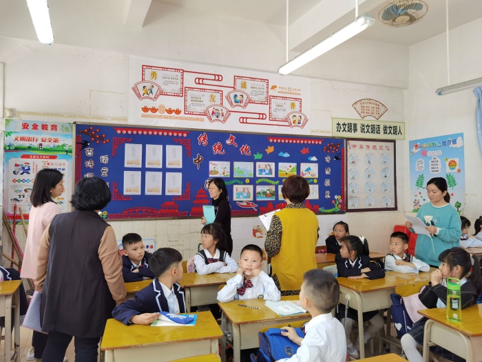 由学校行政班子、年级组长、部分资深老师组成的检查小组对各班级的班级文化建设进行检查评比。检查小组从黑板报设计、班级传统文化氛围营造等方面进行量化评分。