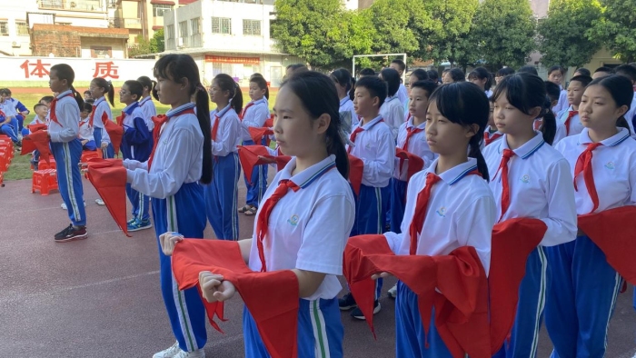 整个入队仪式洋溢着浓浓的温暖之情,队员们在火红的队旗下受到了心灵的洗礼,孩子们无比幸福和自豪的眼神告诉星空体育,他们定会在星星火炬的指引下,牢记党的教诲,全面发展,茁壮成长,努力成为一名合格的共产主义接班人。