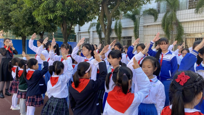 然后,在指挥员的带领下,全体少先队员齐声高唱队歌:“星空体育是共产主义接班人,继承革命先辈的光荣传统……”嘹亮的歌声在校园内回荡,传递着队员们对少先队的热爱与崇敬。