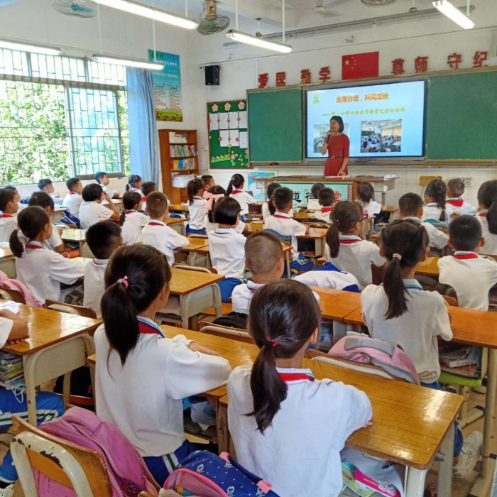 随后,陈校长作了《有效分组,共促成长》专题分享会。在培训中,陈校长首先带领大家学习了分组原则,那就是同组异质,异组同质。她指出:只有将不同层次的学生搭配分组,才能有利于学生之间互帮互助,互相促进。但也要保持组际之间的均衡性,才有利于组际之间的交流和竞争。