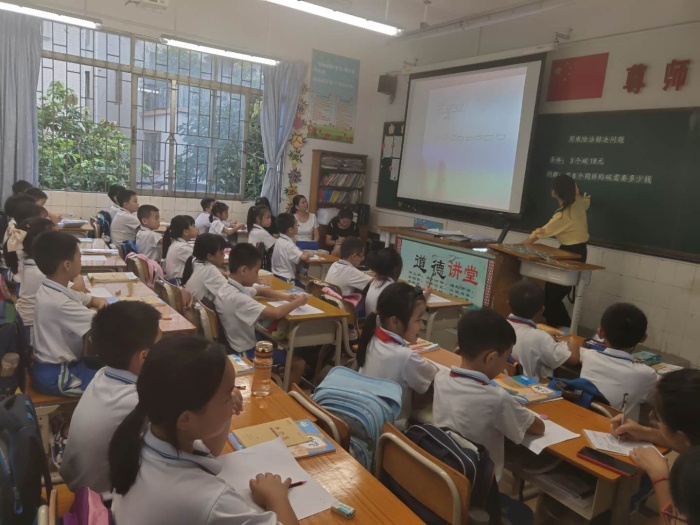 第一环节是曹一小学王洁莲老师和曹二小学许健娴老师各上了一节《归一问题》的同课异构。王老师为这次展示课做了充足的准备,上课过程中教态自然,亲切大方,教学目标合理,在课前导入时候运用简单的提实际问题调动了学生的积极性,激发了他们的学习兴趣。王老师在课中采用了学生小组合作模式,在主动学习中消化了本节难点。许老师在上课时候采用建模方式,从生活入手寻找归一问题,学生积极发言,课堂气氛和谐。