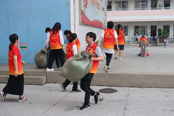 在捐赠过程中,古二小学党员教师志愿者也积极参与进来,为环保回收加油助力,引领广大青少年做力所能及的环保行动。