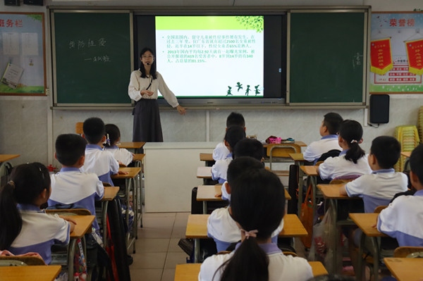 班主任告诉同学们,在遇到性侵时要勇敢机智地面对,首先要想到的是保护自己的生命,要把生命放在第一位。其次是想办法逃脱,并要记住对方的样貌,身体特征等,以便告诉老师或家长,得到他们的关心帮助,并把坏人绳之以法。