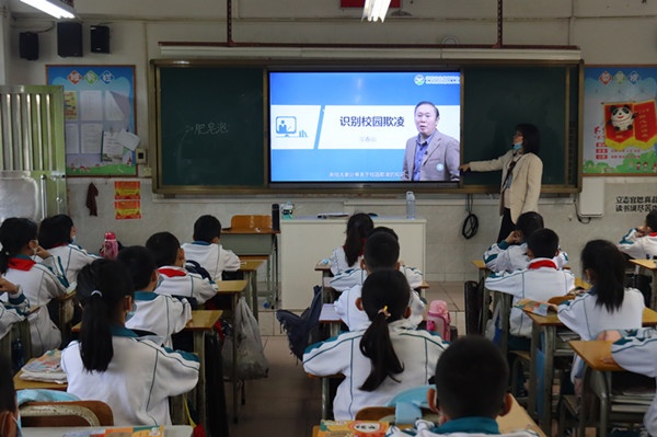 首先,各班班主任播放中山市安全教育平台学习视频给学生看,一至三年级是关于情绪调节的内容,四至六年级是关于拒绝校园欺凌的内容。