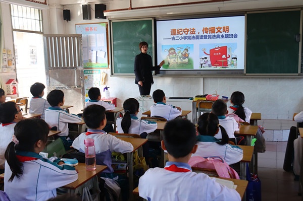 为认真学习贯彻习近平法治思想,深入贯彻落实党的十九大和十九届六中全会精神,着力培育学习宪法、尊崇宪法的校园法治文化,提升宪法教育的影响力和感染力,2021年11月29日,古镇镇古二小学开展了宪法晨读暨学习民法典活动。